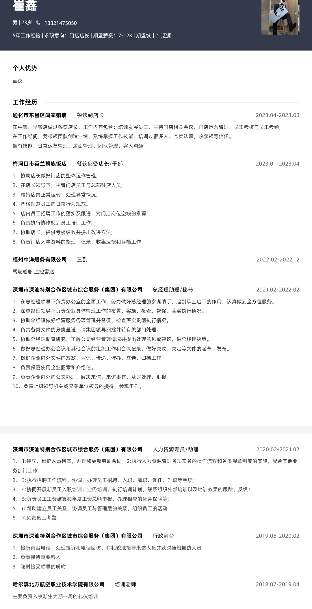 23年4月~至今 通化閆家粥鋪副店長(zhǎng)